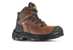 High-cut and robust work shoes with upper in water repellent, soft and resistant pull-up leather.