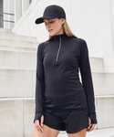 ¼ zip Jersey top with wicking finish. Long sleeves with thumbhole and fold over cuffs. Elasticated binding on cuffs and hem. Raglan shoulder seams with flatlock stitching and reflective dots detail on back of garment. 1/4 length zip with reflective trim and semi-automatic lock zip slider. Stand up self-fabric collar. Side panels. Key pocket on left back panel seam with concealed zip and inner headphone access hole. Tombo tear-out label. BSCI certified.