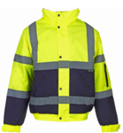 Our distinctive Hi Vis 2 Tone Bomber Jacket is ideal for security and site workers. This bomber jacket is perfect for use as part of a branded uniform range.