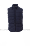 Men’s vest in feather-effect padded, concealed plastic zip, two external pockets with concealed zips, interior in contrasting colour.